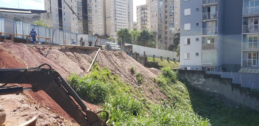 | - Foto em 15/04/2025 - Patamar criado para os serviços de implantação de perfis. | |
