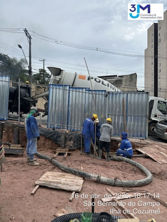 | - Foto em 16/04/2025 - Concretagem do pé dos tubulões com os perfis já implantados. | |