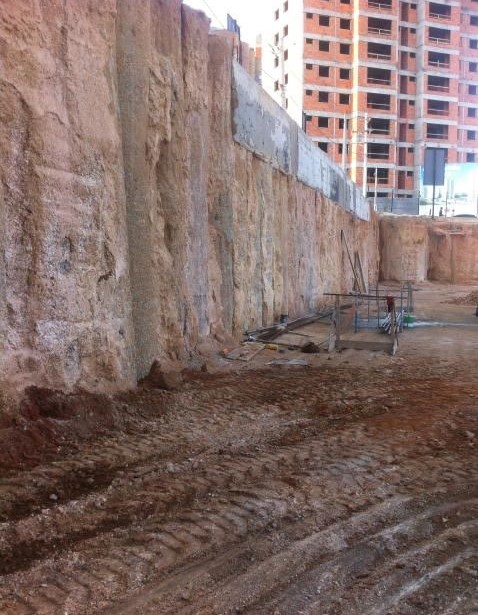 | - Foto em 08/05/2014 - Contenções concluídas, e fundação em andamento. | |
